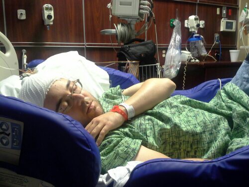 Darren did not get nausea or throw up in any way, so that was good. He is not using his right arm at all. Now I know this is his tremor arm but at home he uses it occasionally for things but not at all at the hospital.