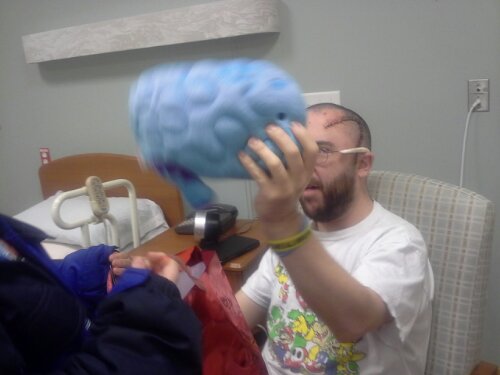 We got Darren a pillow in the shape of a brain: