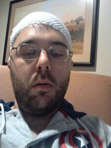 Thanks for the prayers. Let me tell you I have some WiCkEd scars on the top and side of my head. Cuts going all over the place. These cuts and scars really leave me with quite the headache. The top/front of my head kills me at times, then I have the nurse give me some meds. I have a mesh-type beenie to cover my scarred head where the scan devices on the inside/outside of my brain. The mesh helps keep the my brain “leakage” under control.